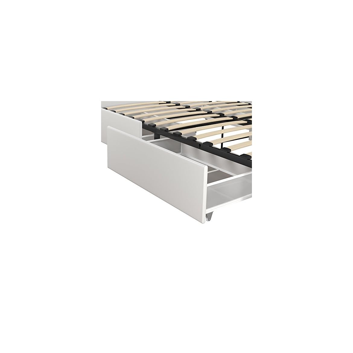 Dhp dean upholstered bed with storage white faux leather twin com. Dhp dakota upholstered platform bed with storage drawers, black faux leather, queen description. This contemporary and chic bed frame is designed with graceful button tufted diamond patterns on both the headboard and footboard and upholstered in faux leather. Dhp dakota upholstered platform bed, full size frame, black. The dhp dakota upholstered bed will be the focal point of your bedroom. On sale for $599.99 original price $779.00 $ 599.99 $779.00. Realrooms alden platform bed with storage drawers. Metal side rails for guaranteed stability and durability. Dorel dhp dakota upholstered platform bed with storage drawers, black faux leather, queen. 86l x 64.5w x 38h; Allewie queen bed frame with adjustable diamond button tufted headboard,faux leather upholstered platform bed,mattress foundation,no box spring needed,black 4.6 out of 5 stars 992 $149.99 $ 149. With wooden slats to support the mattress, no box spring is needed, giving you the low profile look you love. On sale for $329.00 original price $539.99 $ 329.00 $539.99.