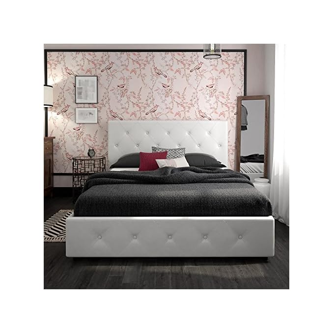Faux suede + see all. Dhp dakota upholstered platform bed with storage drawers, black faux leather, queen description. Allewie queen bed frame with adjustable diamond button tufted headboard,faux leather upholstered platform bed,mattress foundation,no box spring needed,black 4.6 out of 5 stars 992 $149.99 $ 149. Dhp dean upholstered bed with storage white faux leather twin com. 40 pounds ideal for small space living. Wrapped in faux leather in your choice of color with diamond button detailing, this bed adds modern design and unsurpassed sophistication to your bedroom. The dhp dakota upholstered bed will be the focal point of your bedroom. With wooden slats to support the mattress, no box spring is needed, giving you the low profile look you love. 35l x 23.5w x 6.5h; 4 out of 5 stars with 2 ratings. 4 drawer king leather upholstered platform bed. Give yourself the bed you deserve! 35l x 23.5w x 6.5h | bed weight limit: