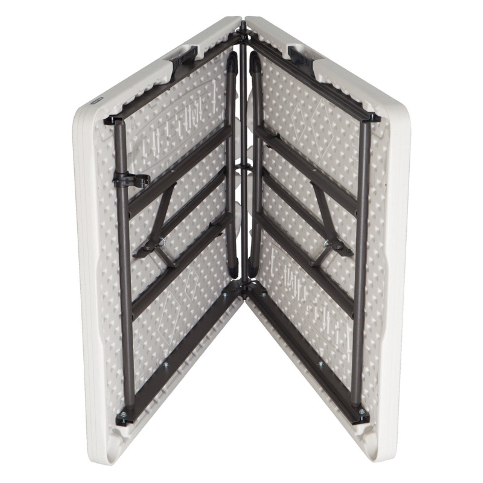 Lifetime 6 foot fold in half table light commercial white granite original. Whether you're looking for extra seating at your next party or a reliable table for your home improvement project, lifetime has you covered! The lightweight table is outfitted with a carry handle for effortless portability and folds in half for compact storage. Lifetime 4 ft fold in half adjustable table model 80726 features benefits video. Normally i find the lifetime chairs & tables on the side of the warehouse.